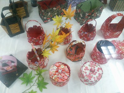 牛乳パックをリサイクル利用して、椅子、ペンたて、小物入れ、葉書入れ等々が見事に出来上がっています。