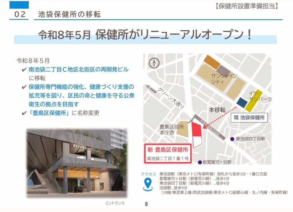 令和8年5月に池袋保健所がイケ・サンパーク脇から南池袋二丁目C地区北街区の再開発ビルへの本移転に合わせ、条例で規定する位置を変更。