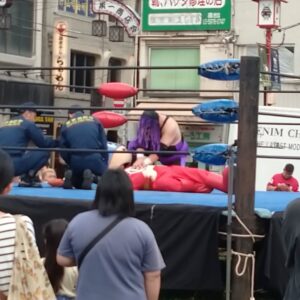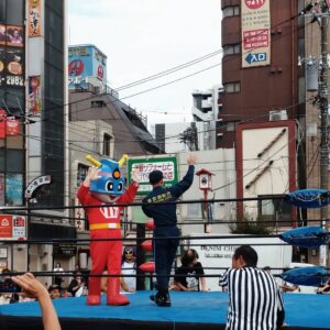 25R7.10.05 巣鴨でプロレスと災害時の避難訓練 2025/10/5 2025/10/14 2025/10 巣鴨でプロレスと災害時の避難訓練に地元の島村議長が参加しました。 東京消防庁キュータ君も登場 最後は気を失ったキュータ君にプロレスラーが心肺蘇生法を行います。