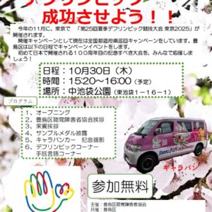 いよいよ11月15日から26日まで、デフリンピックが開会されます。豊島区からも2人の選手が参加。どなたでも無料で予約無しで競技が観戦できるとの事です。