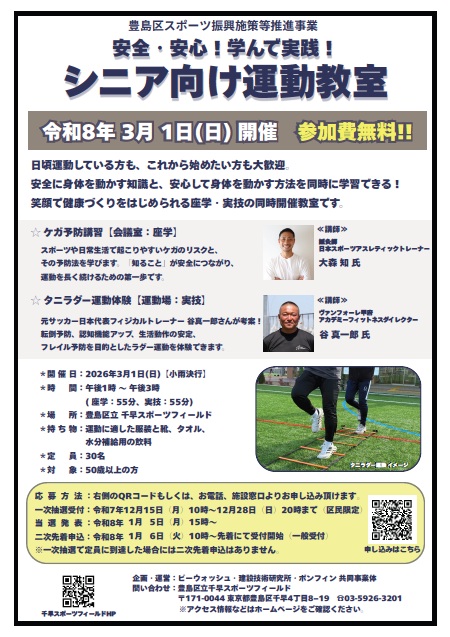 安全・安心!学んで実践!シニア向け運動教室(千早スポーツフィールド)|豊島区公式ホームページ