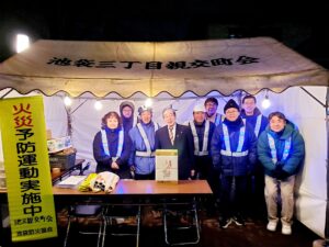 24日。クリスマスイブの夜、池袋三丁目親交町会(木内晴一会長)の夜警に辻議員が参加しました。
