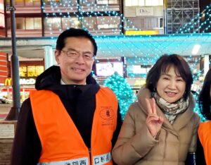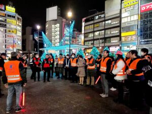 22日、にぎわう池袋西口駅前で行われた環境浄化パトロールに、辻議員が参加しました。