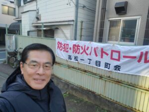 12/26、公明区議団の辻議員が高松1丁目町会(吉田雅明会長)の夜警でご挨拶させて頂きました。