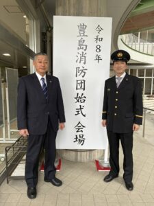 1/11豊島消防団始式に、根岸議員が消防団員として、島村議長は、議長として参加し、議会を代表して祝辞を述べました。消防長官賞、区長賞等、表彰された皆様おめでとう御座います。